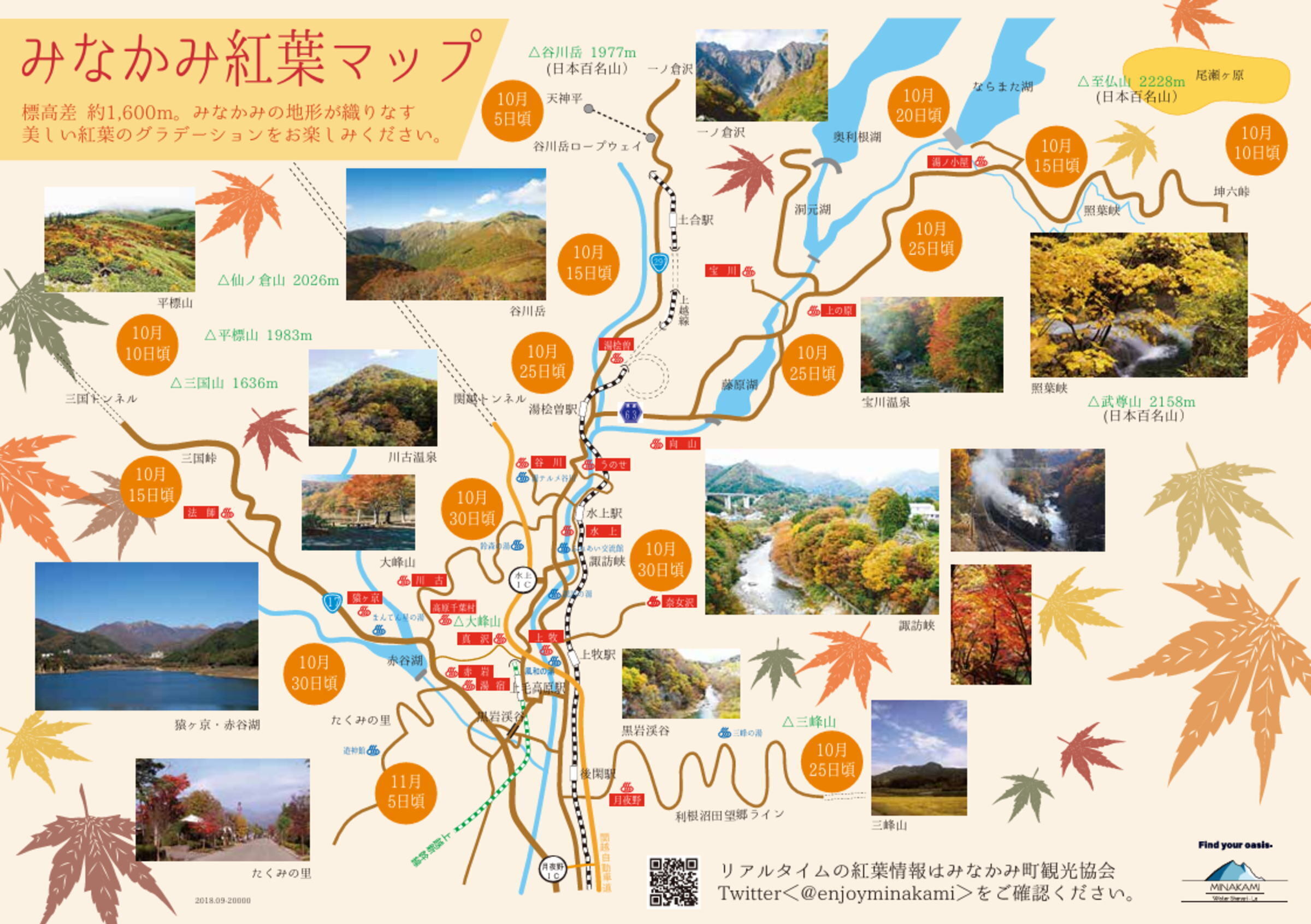 標高差 約1,600m。みなかみの地形が織りなす、美しい紅葉のグラデーションをお楽しみください。