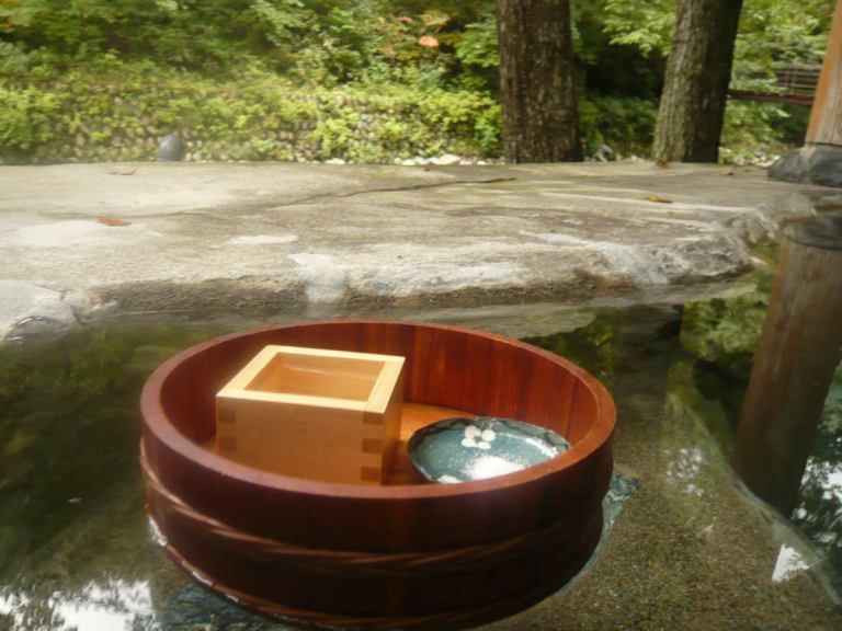 在露天浴池等享受清酒 請在浴缸裡享受。